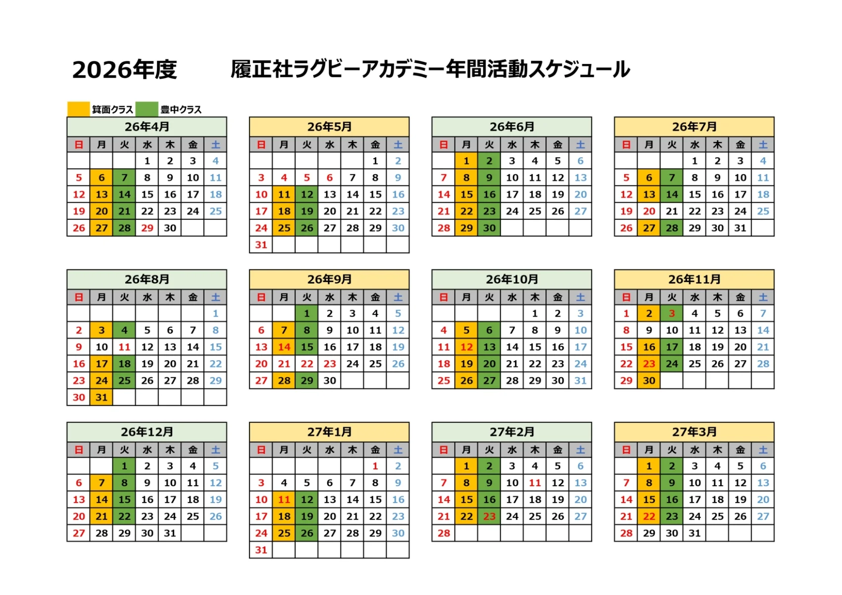 履正社ラグビーアカデミーは、「箕面クラス」・「豊中クラス」の2つの拠点で活動しています。