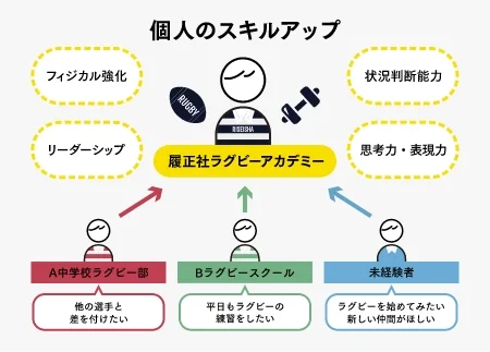 履正社ラグビーアカデミーは、平日の放課後に、個人のスキルアップに特化したプログラムを通じて、主体性・リーダーシップ・フォロワーシップなど、これからの時代に必要な力を育てる場です。